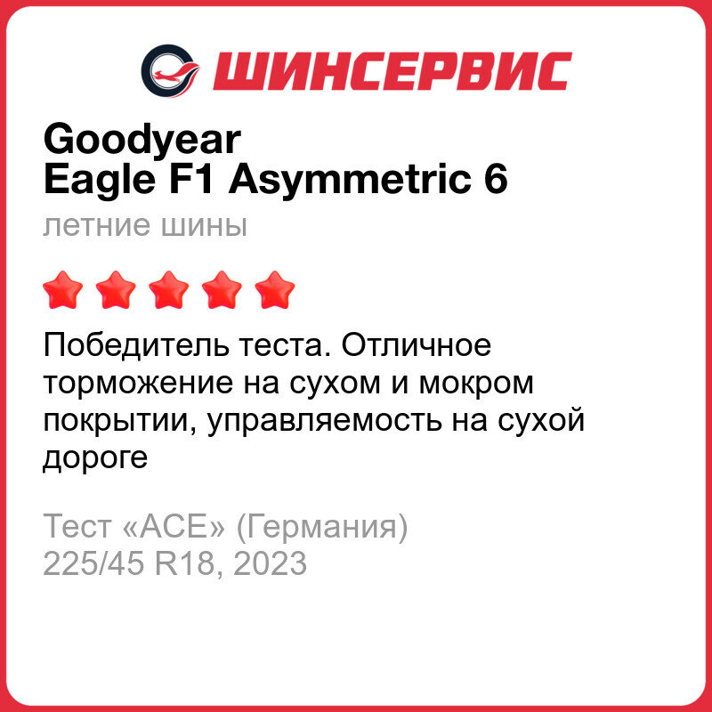 СохранитьЛетняя шина Goodyear Eagle F1 Asymmetric 6 255/35 R19 96Y интересное: