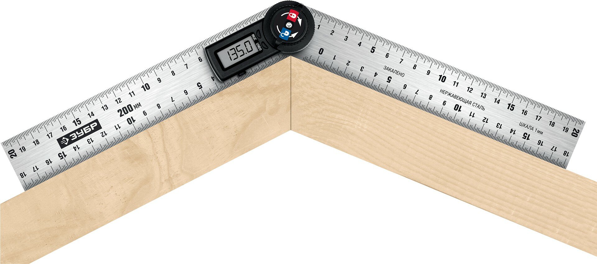 УТЭ-20 транспортир-угломер электронный, 200 мм, Диапазон 0-360°, Точность 0,3°, Фиксация угла, ЗУБР Профессионал