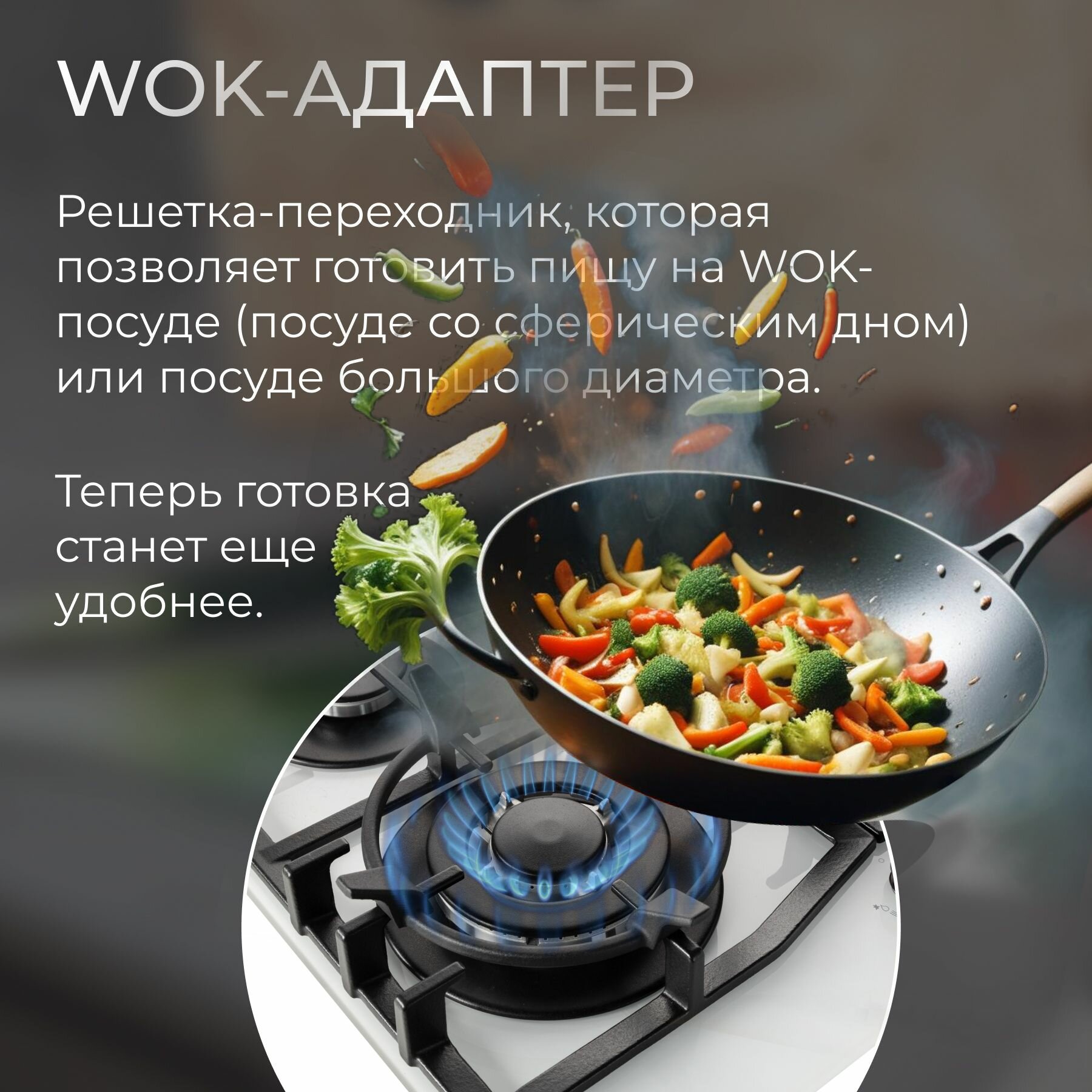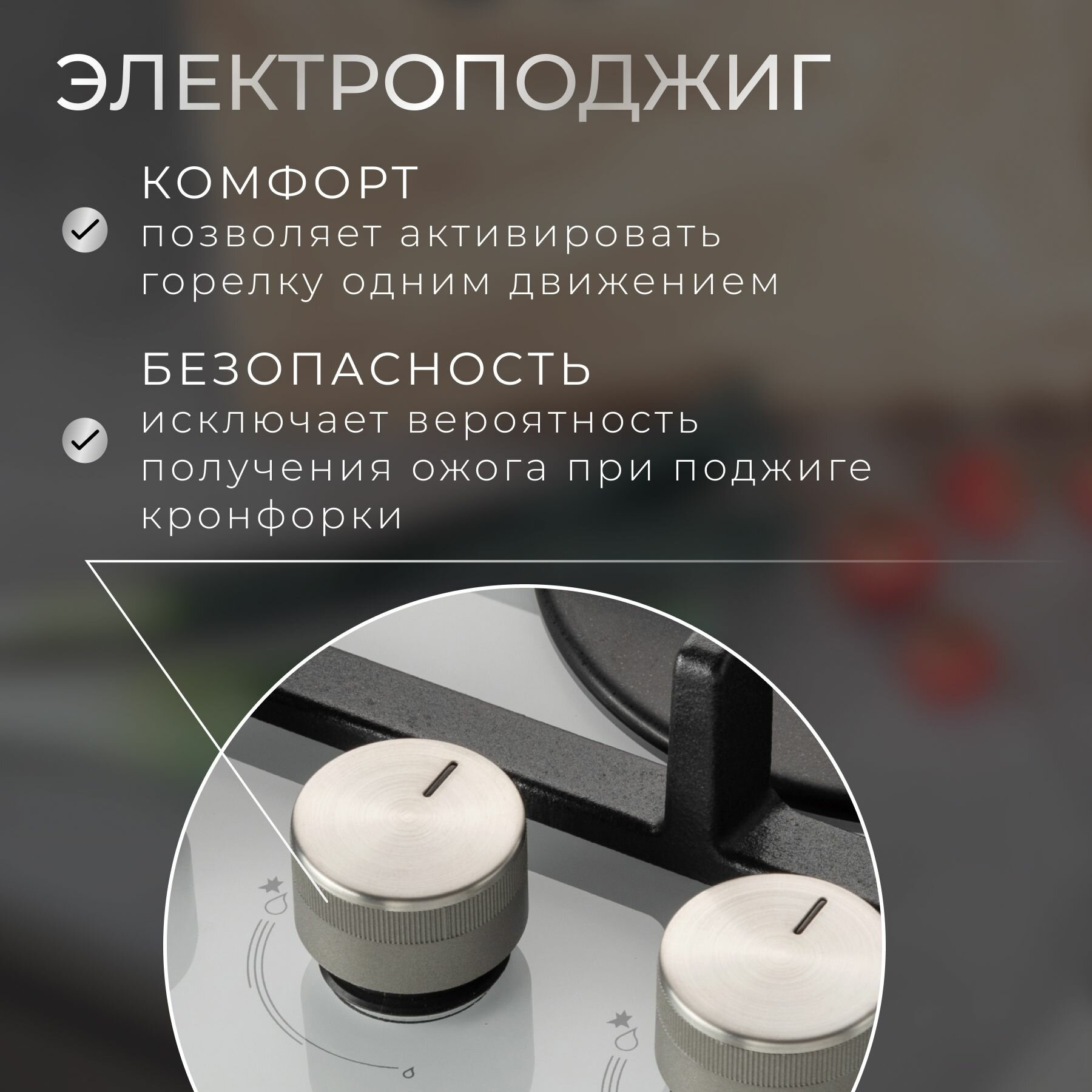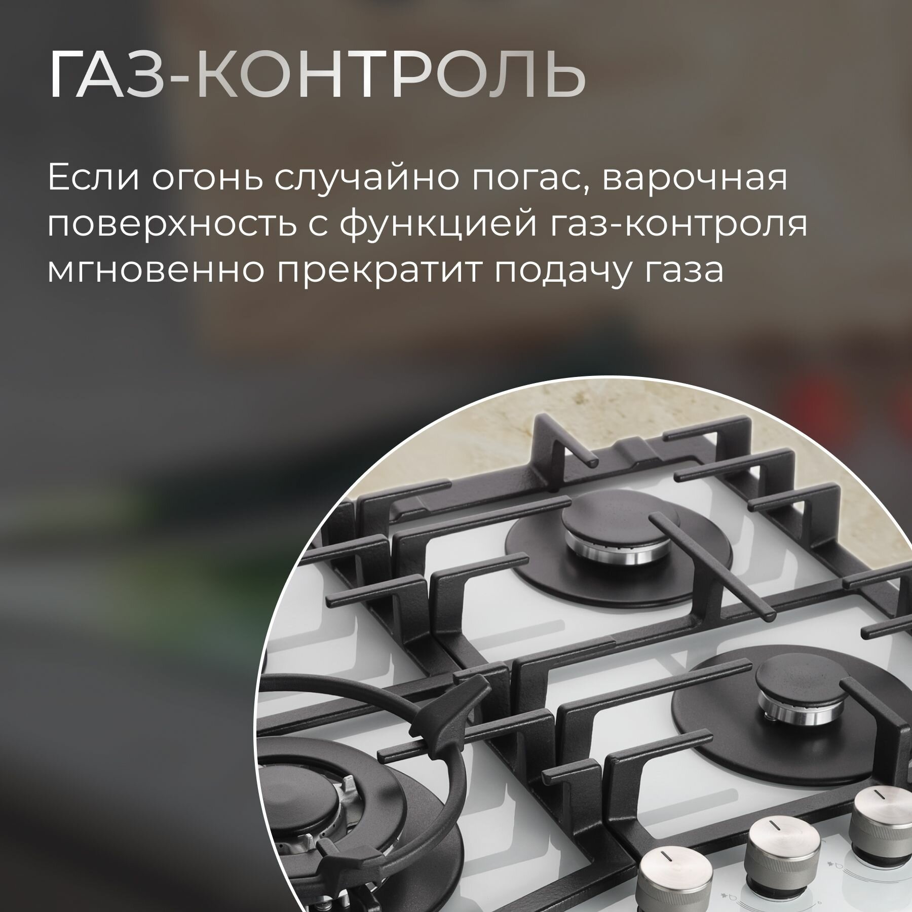 Газовая встраиваемая варочная панель 60 см KURO KHG 642 WG, газ-контроль, электроподжиг, WOK-конфорка, чугунные решетки, белая интересное: