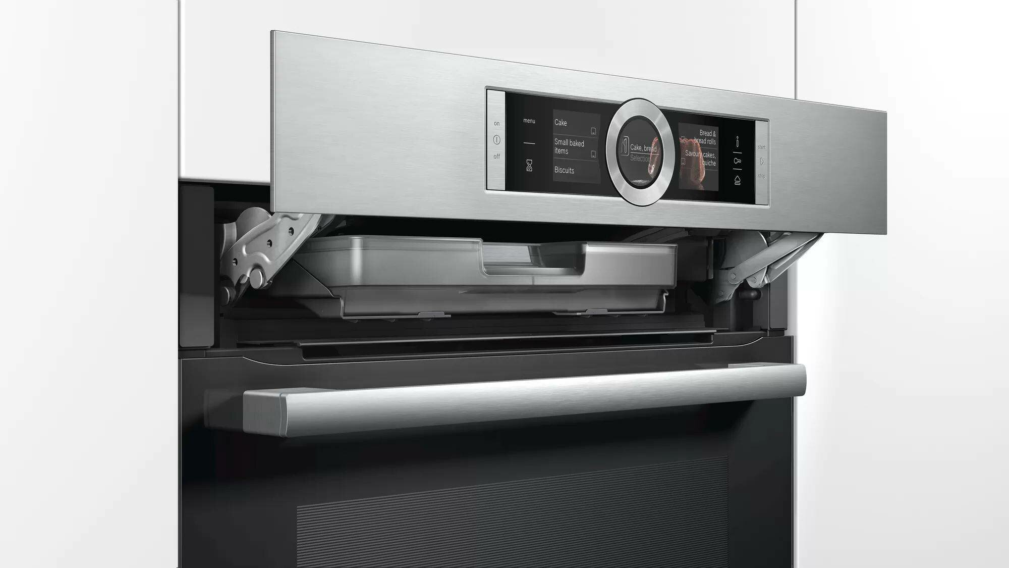 Электрический духовой шкаф с паром Bosch HSG656XS1, серебристый