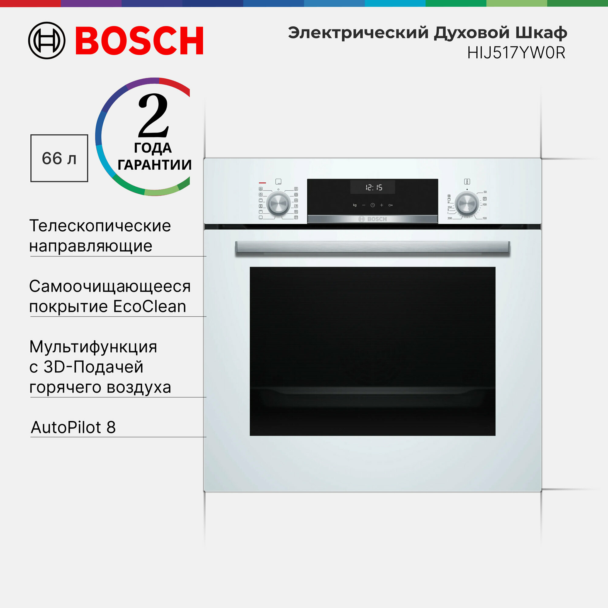 Духовой шкаф Bosch HIJ517YW0R, приготовление на пару, телескопические направляющие, доводчик двери, AutoPilot, 66 литров интересное:
