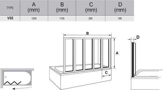 Шторка для ванны складывающаяся пятиэлементная Ravak VS5 белая+рейн 794E010041