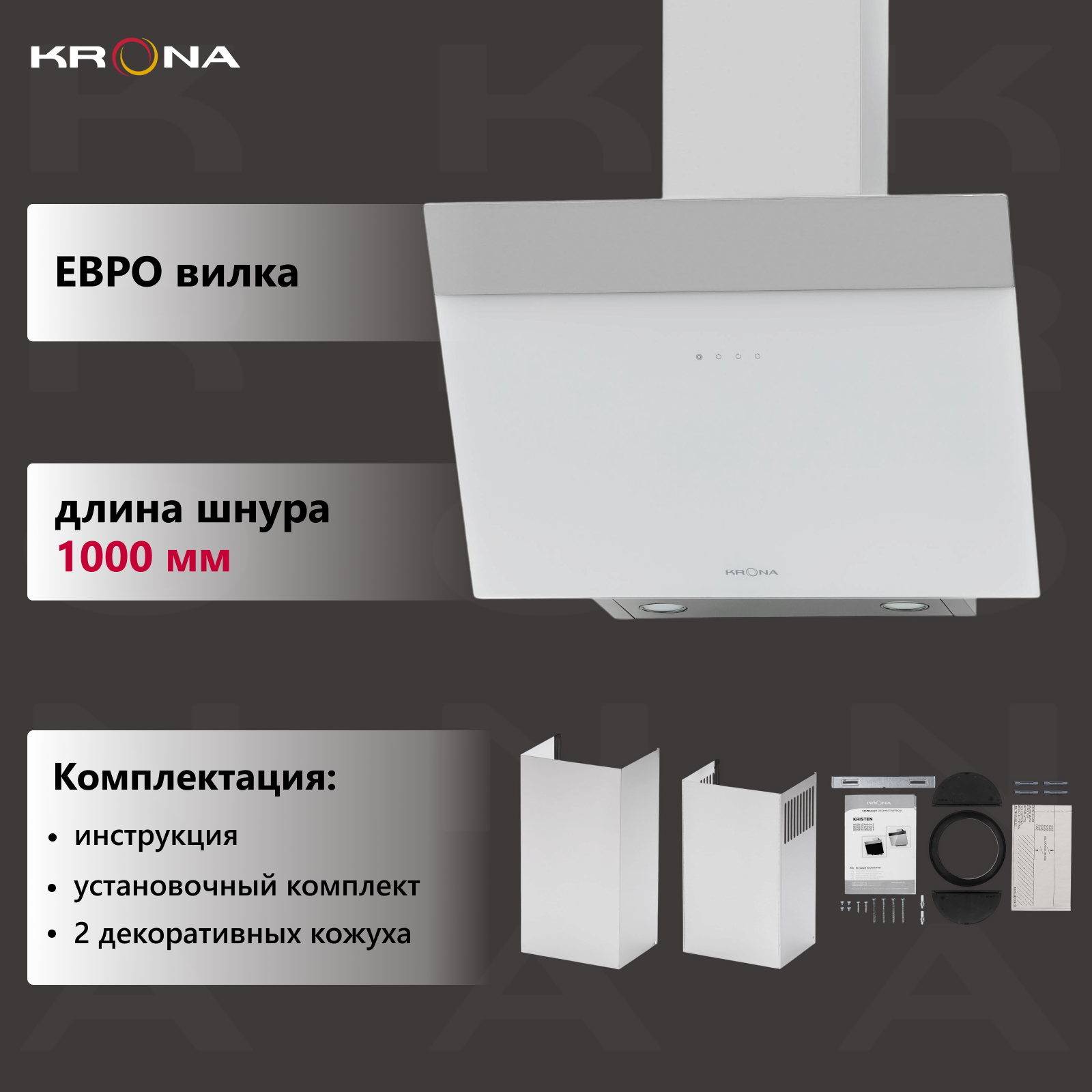 Вытяжка каминная KRONA Kristen 600 white/inox S