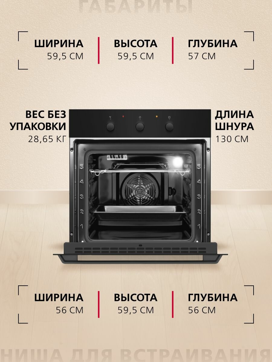 СохранитьЭлектрический духовой шкаф Hansa BOES681621 встраиваемый, 60 см, 62 л, 8 режимов, с таймером, конвекцией, грилем и быстрым нагревом, черный интересное: