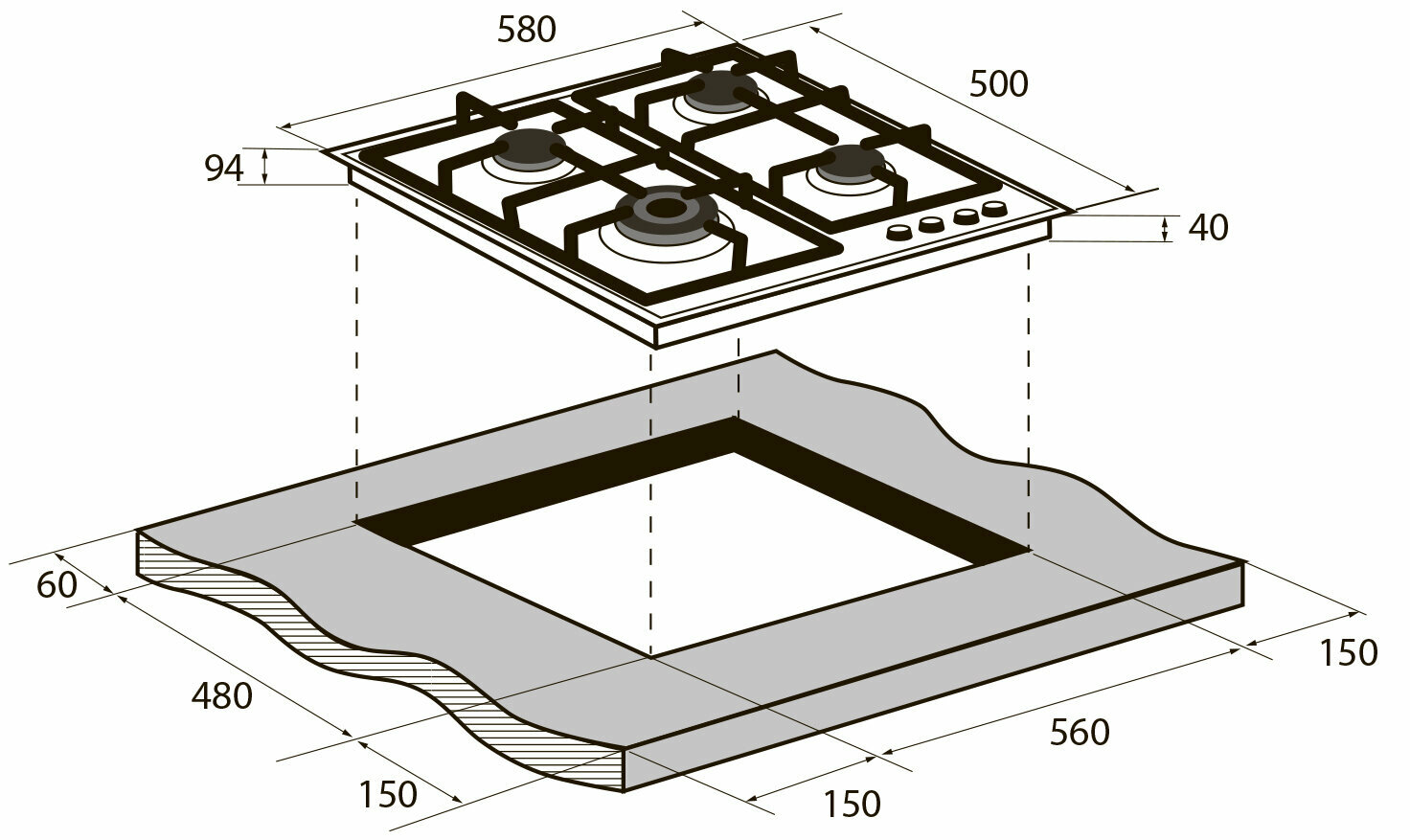 | Ширина для встраивания | 56 см |