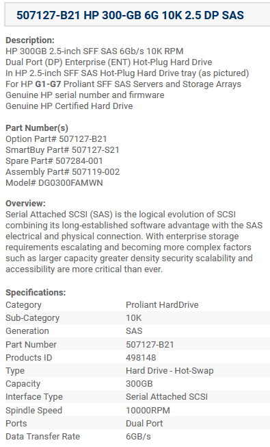 507127-B21 Hewlett-Packard 300GB 6G SAS 10K SFF