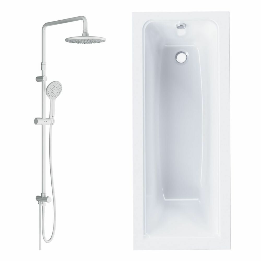 Акриловая ванна 1700x700 с каркасом и шторкой, душевая система со смесителем для ванны и душа AM.PM Gem W90ASET-170D3W5