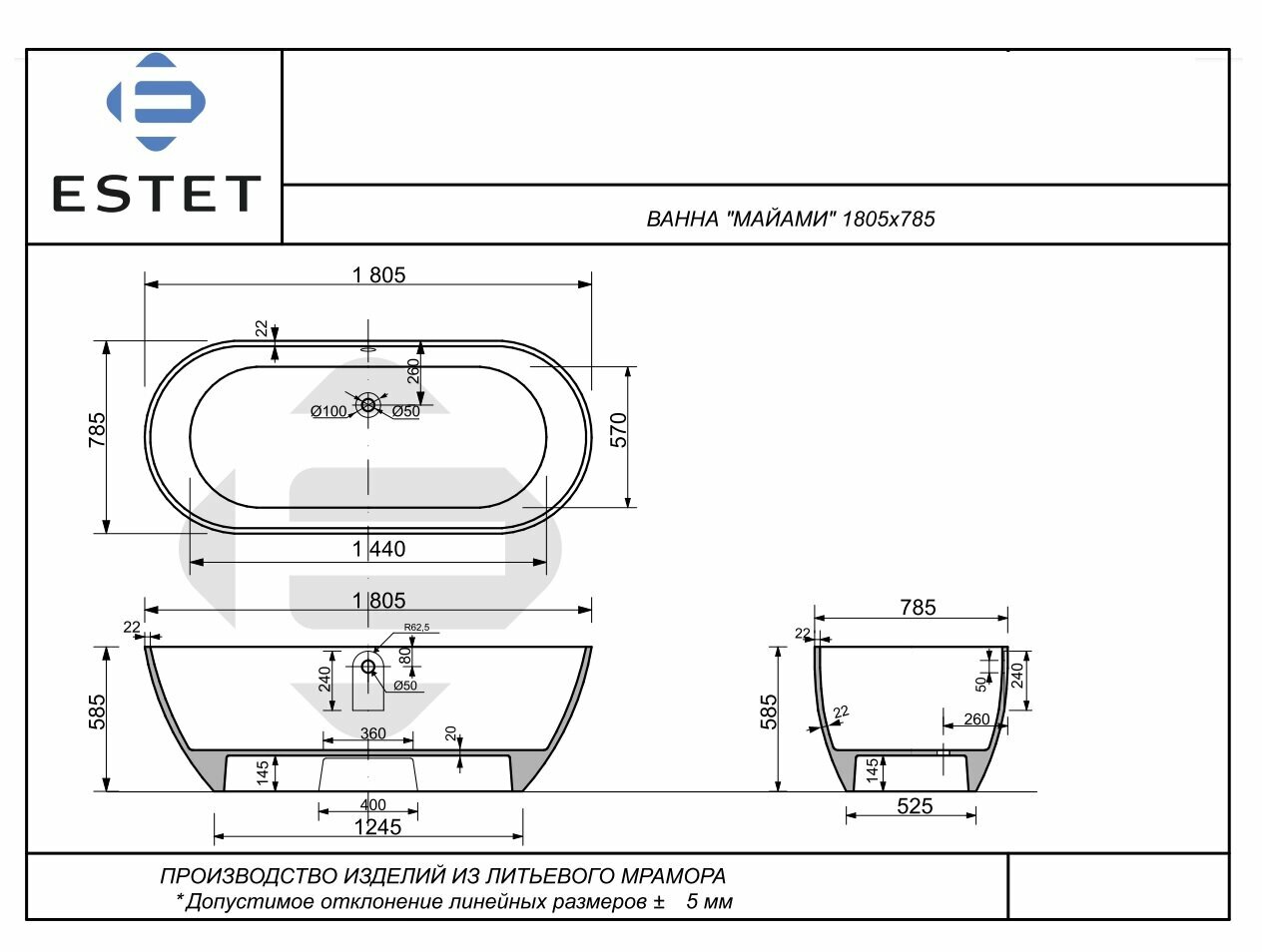 | Дополнительная информация | Диаметр слива 50 мм. |