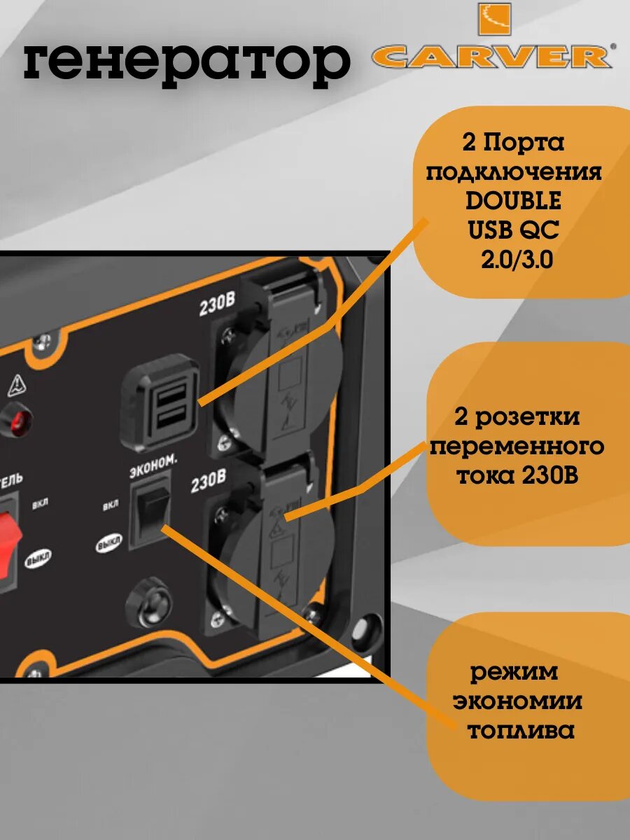 Генератор бензиновый Carver PPG-2000 (01.020.00022), инверторный, 2 кВт