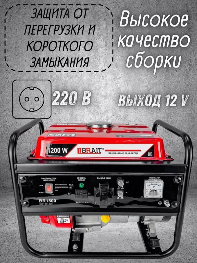 Купить Генератор бензиновый Brait BR1500 (0,9/1,2кВт,220В,50Гц)