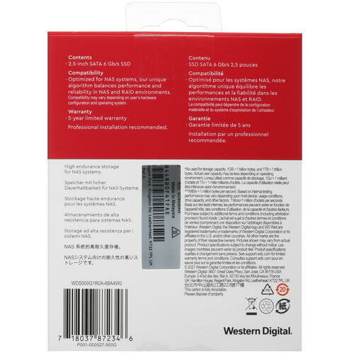 SSD накопитель Western Digital SATA/2.5/500GB RED (WDS500G1R0A)