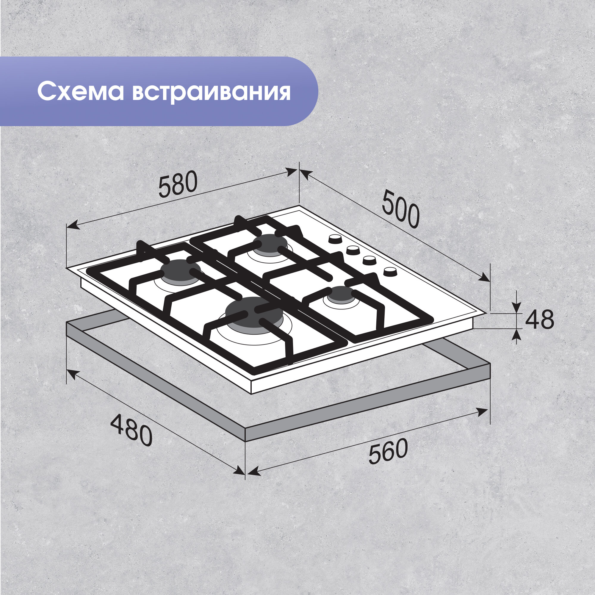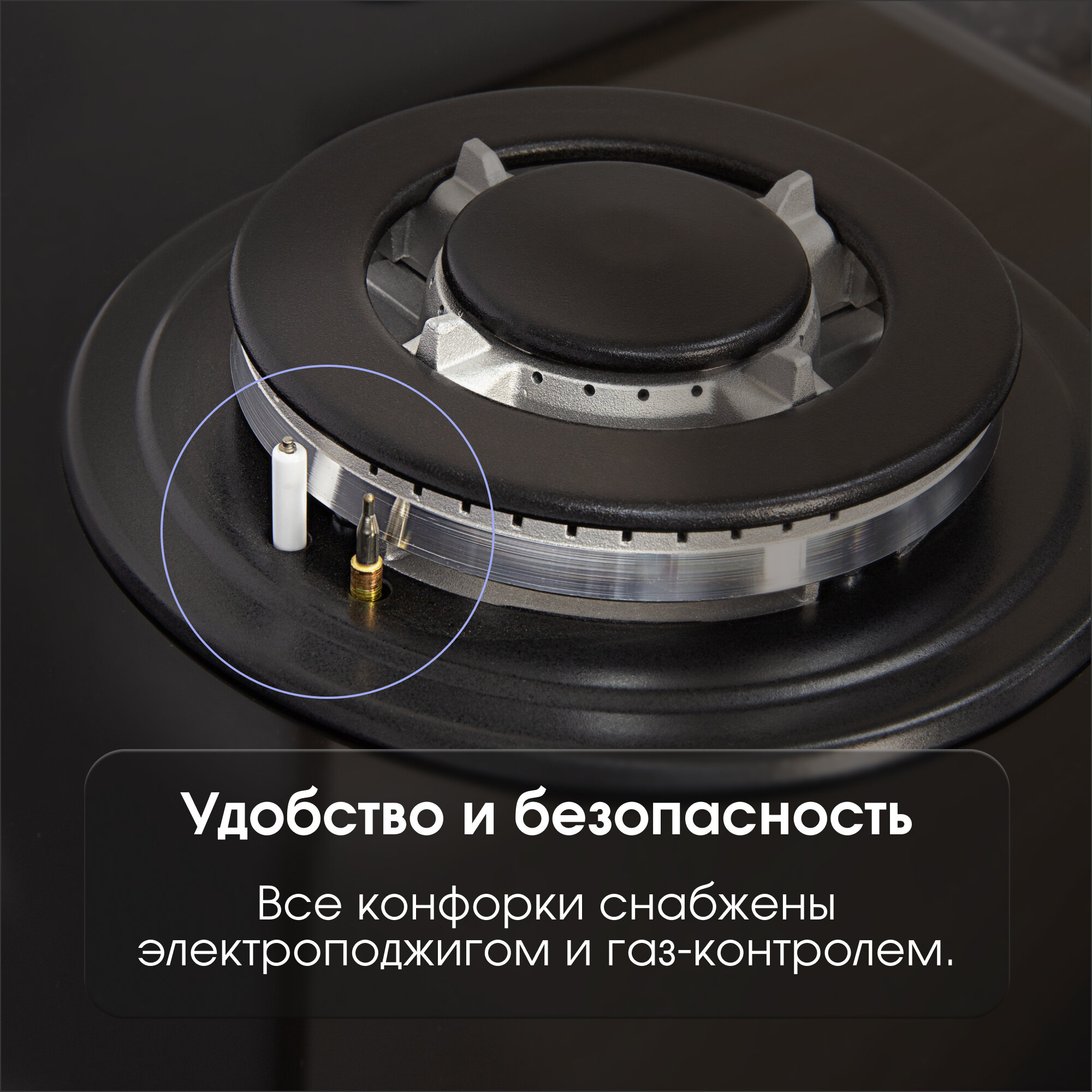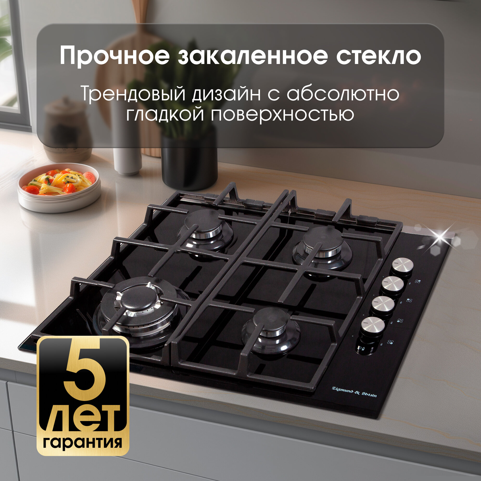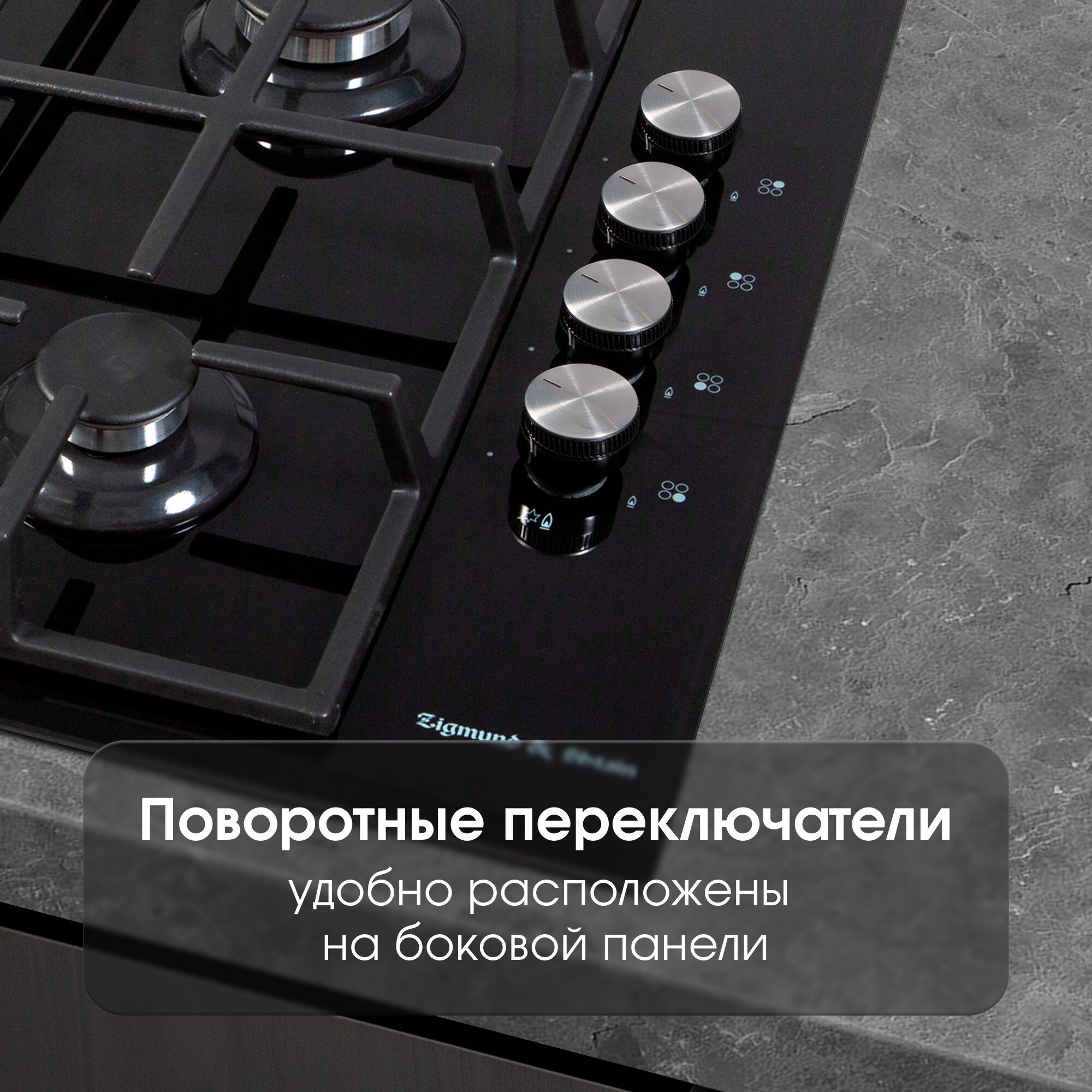 Варочная панель газовая Zigmund&Shtain MN 84.61 S/чёрн стекло 4конфКитай