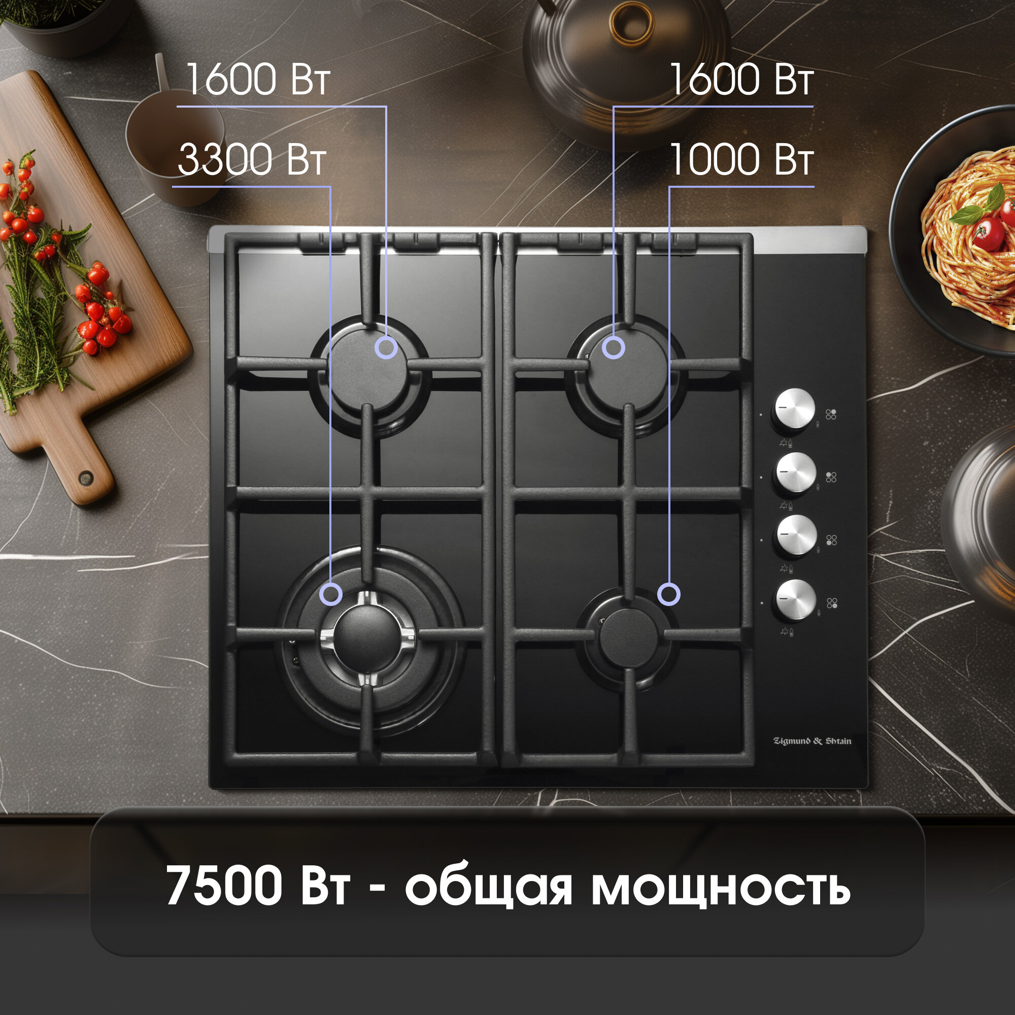 СохранитьВарочная панель газовая Zigmund & Shtain MN 84.61 S, 4 конфорки, 8100 Вт, черный интересное: