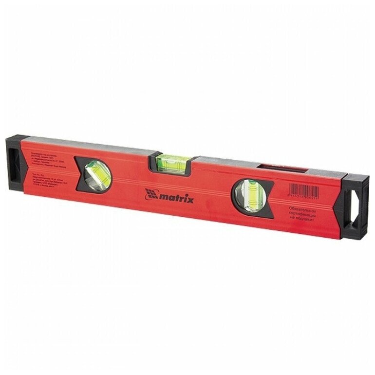 Уровень магнитный алюминиевый Matrix, усиленный, фрезерованный, 3 глазка (1 зеркальный), 1500 мм