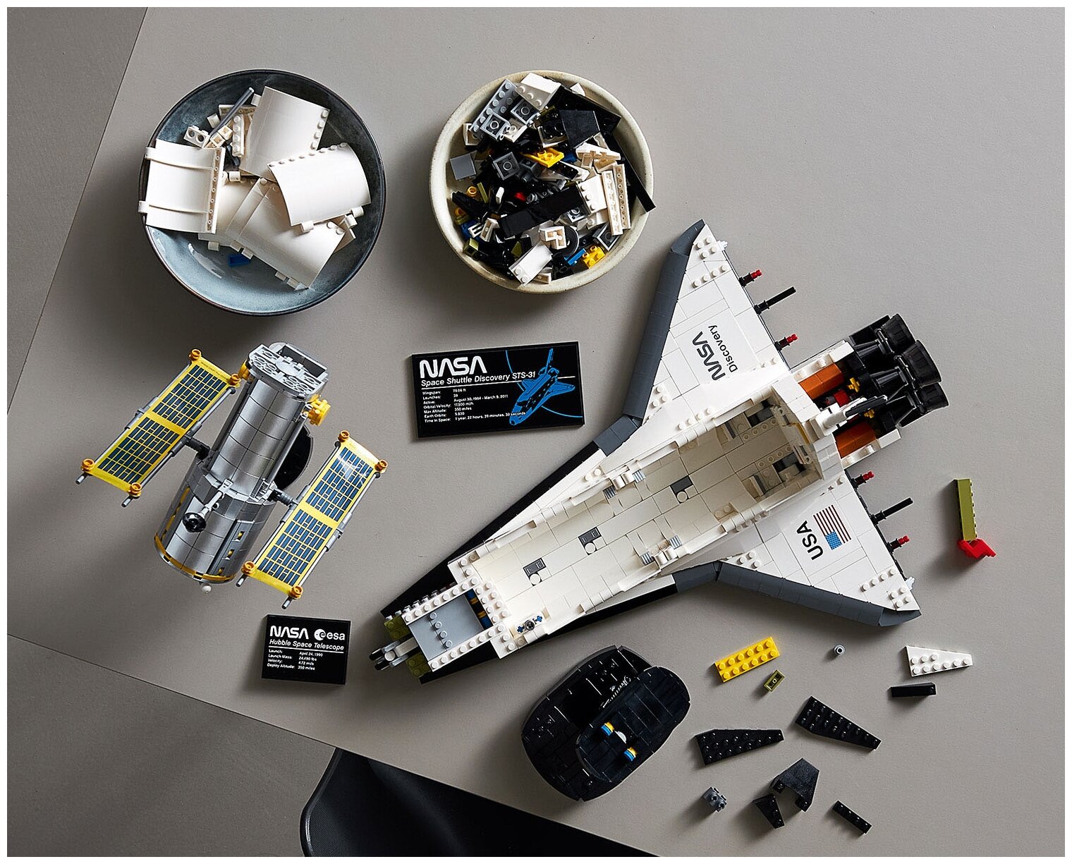 | Плюсы: | Супер крутой набор. LEGO как всегда на высоте, приятно дополнил коллекцию NASA - Сатурн-5-Аполлон, Лунный модуль Аполлон 11 и МКС. Детализация на высоте как шаттла, так и спутника Хаббл |