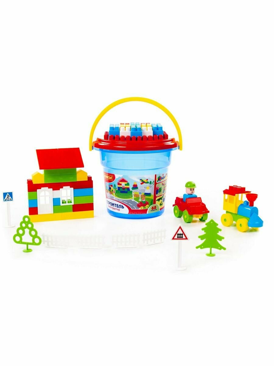 Полесье Конструктор «Строитель», 68 элементов, в ведре макси с крышкой