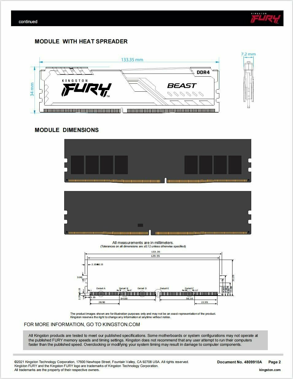 Оперативная память Kingston Fury Beast DDR4 3200 МГц 2*16GB CL16 Чёрный интересное: