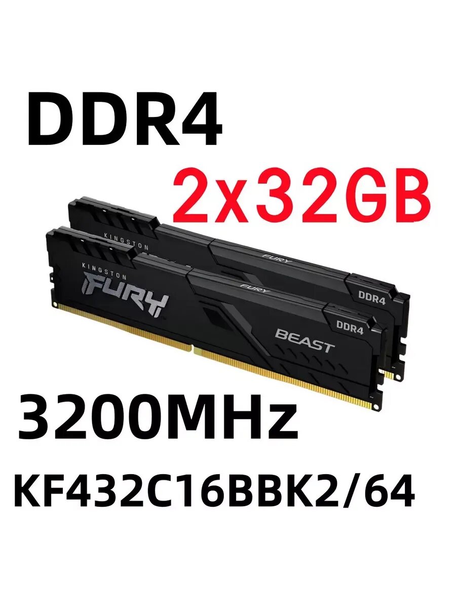 Купить Оперативная память Beast DDR4 64 Гб для ПК, KF432C16BBK2/64
