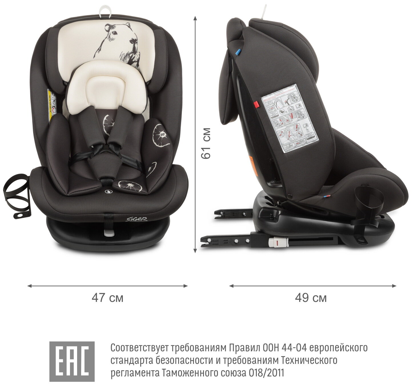 | Особенности | вес: не более 7.2 кг; замок ремней с защитой от неправильного использования; система плавного вращения кресла на базе на 360°; соответствует требованиям Правил ЕЭК ООН №44-04 и ТР ТС 018/2011 |