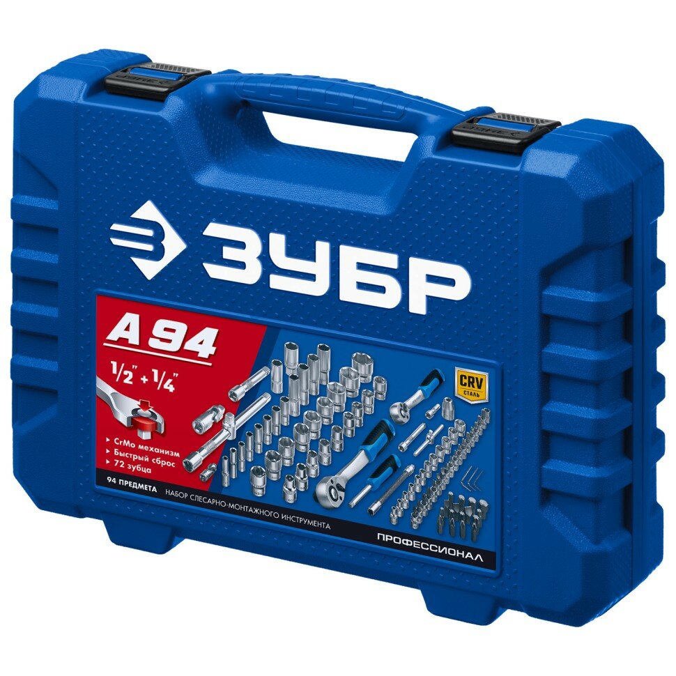 ЗУБР А-94, 94 предм., (1/2″ + 1/4″), универсальный набор инструмента, Профессионал (27635-H94)