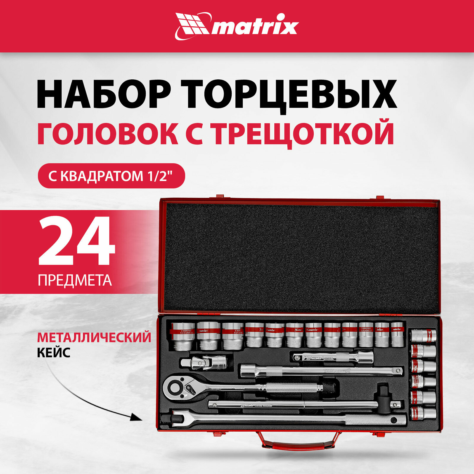 Набор торцевых головок с трещоткой 1/2", 24 предмета Matrix