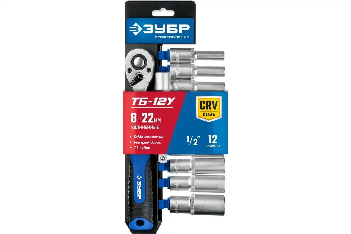 Набор удлинённых торцовых головок 1/2" ТБ-12У Зубр 27650-H12