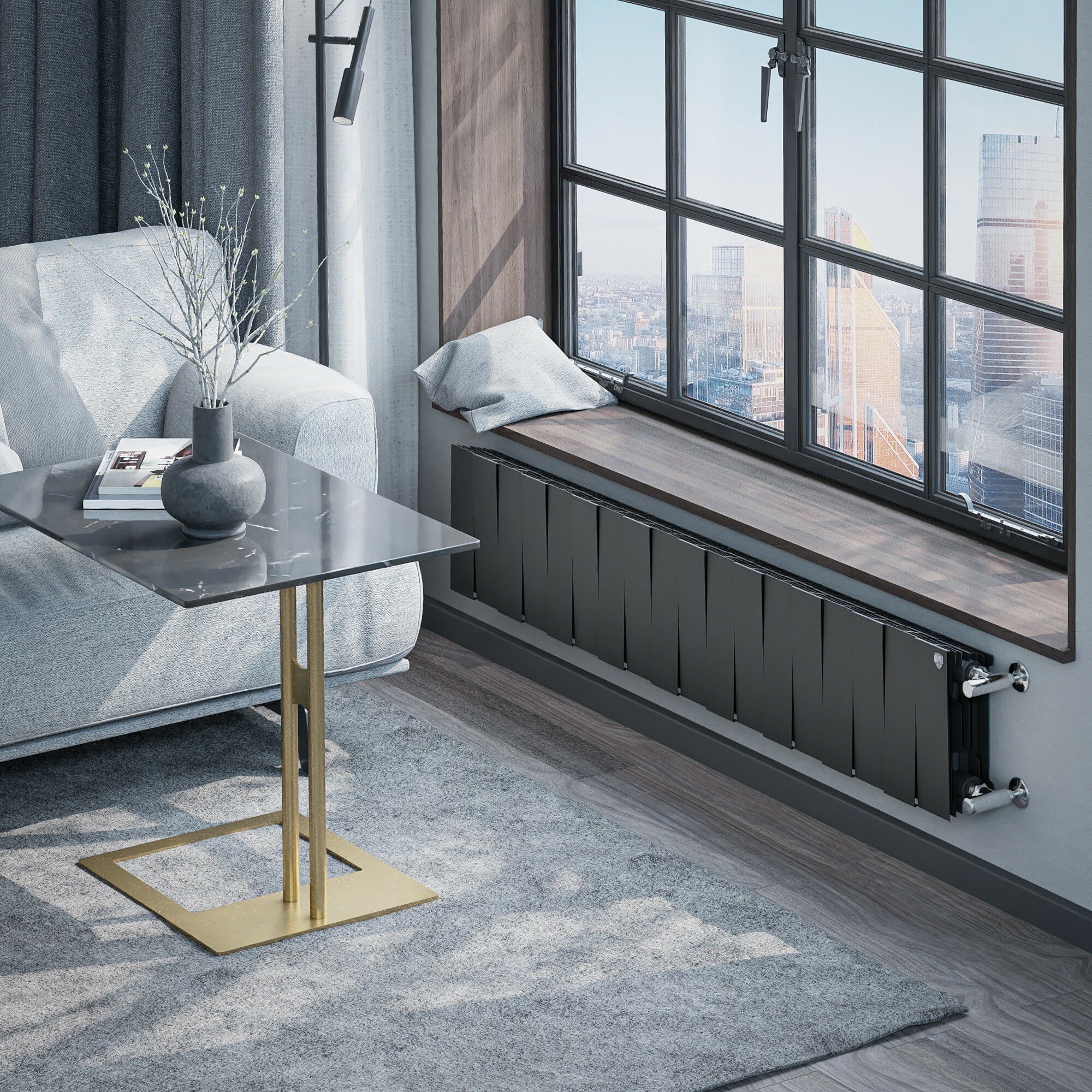 Радиатор ROYAL THERMO PianoForte 200 SILVER SATIN 12 секц., подкл. Боковое, серебристый