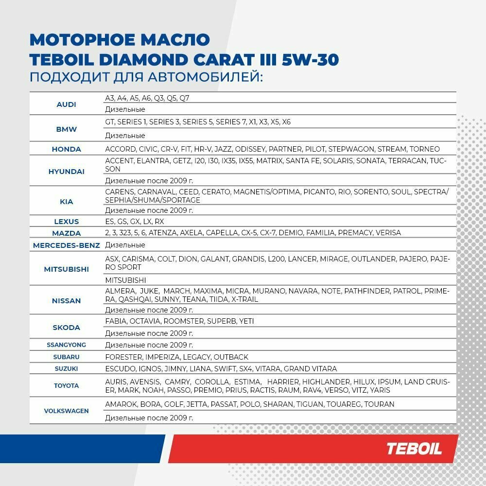 Ниже Вы можете прочитать отзывы на Моторное масло TEBOIL Diamond Carat III 5W-30 Синтетическое 4 л, ознакомится с подробными характеристиками, посмотреть интересные обзоры и фотографии на Моторное масло TEBOIL Diamond Carat III 5W-30 Синтетическое 4 л.