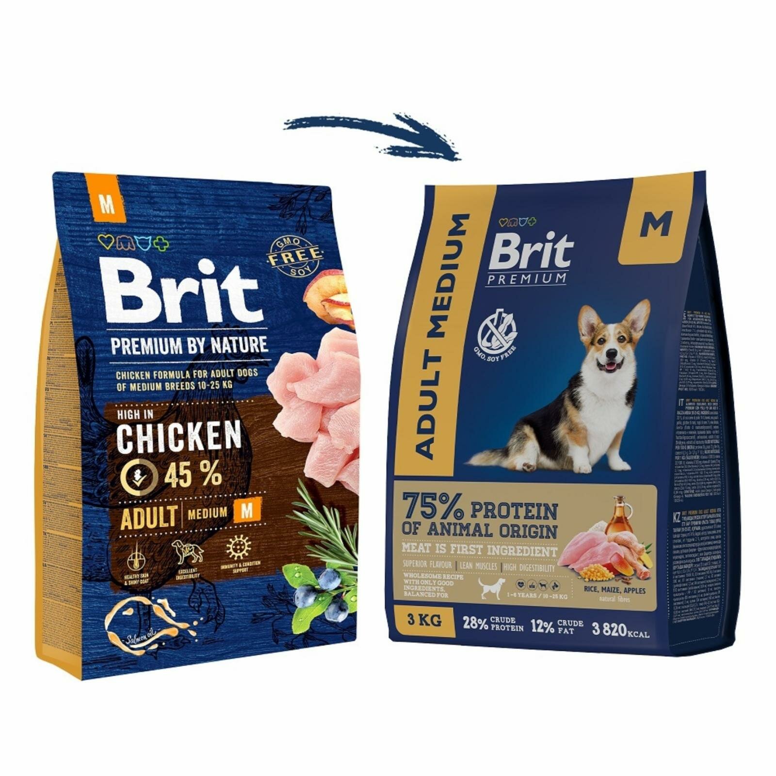 Корм сухой Brit Premium Dog Adult Medium для взрослых собак средних пород 10–25 кг, с индейкой и телятиной 3 кг