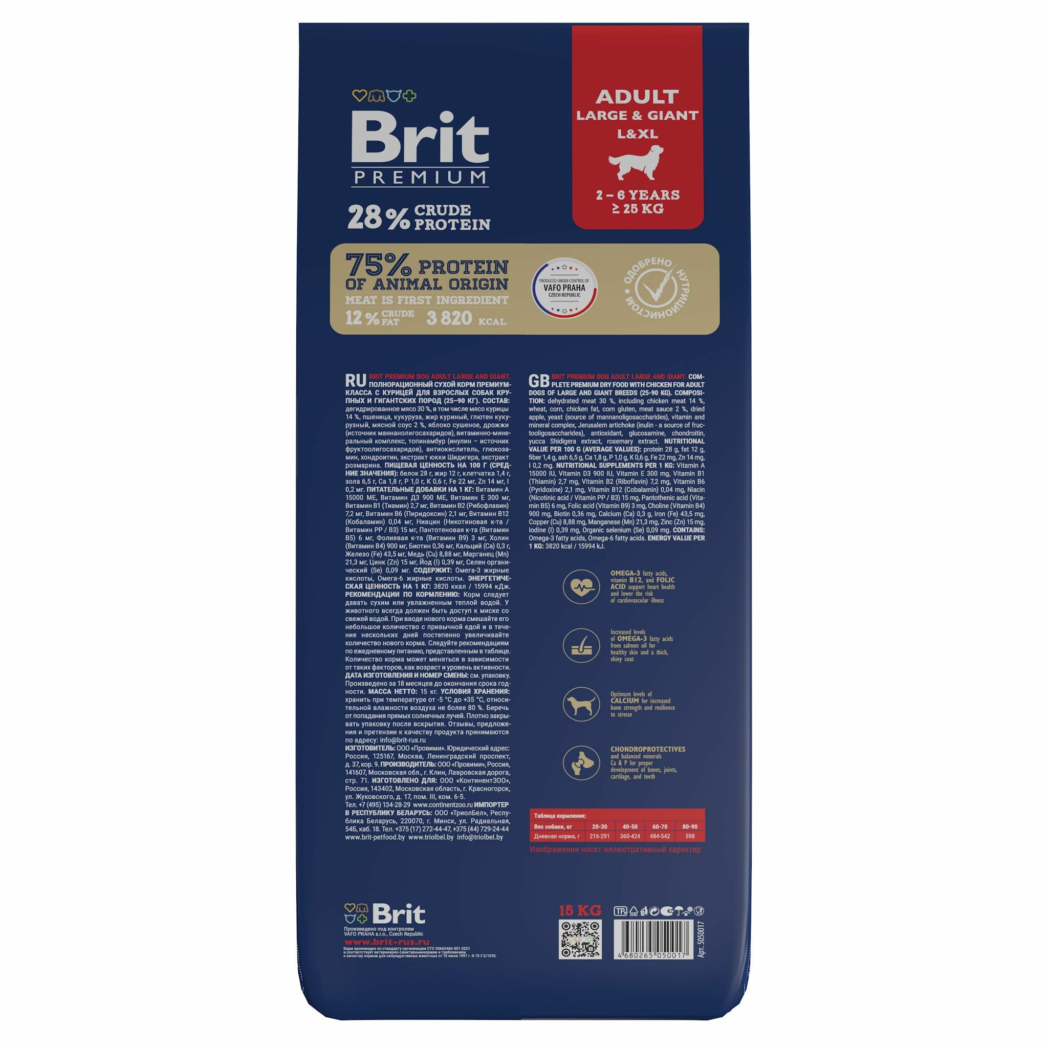 Купить Сухой корм для взрослых собак крупных и гигантских пород Брит Премиум, Brit Premium Large and Giant adult, 15 кг
