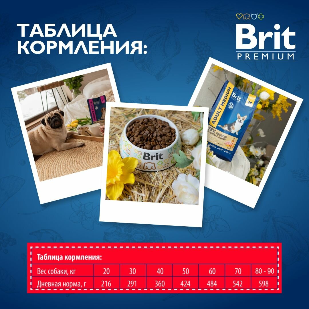 Сухой корм для взрослых собак Brit Premium, курица 8 кг (для средних и крупных пород)