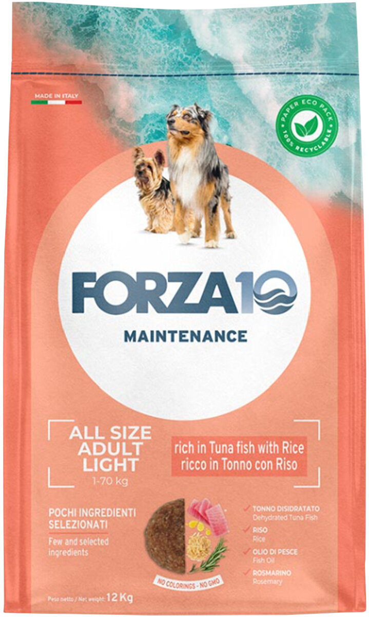 FORZA10 DOG MAINTENANCE LIGHT ALL BREEDS диетический для взр соб всех пород с тунцом и рисом 1170012 12 + 12 кг