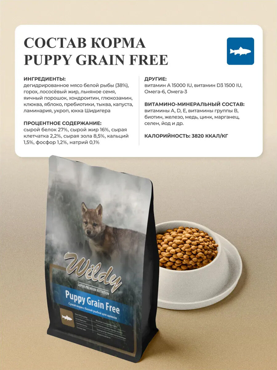 Купить WILDY PUPPY GRAIN FREE беззерновой для щенков с белой рыбой (1 кг)