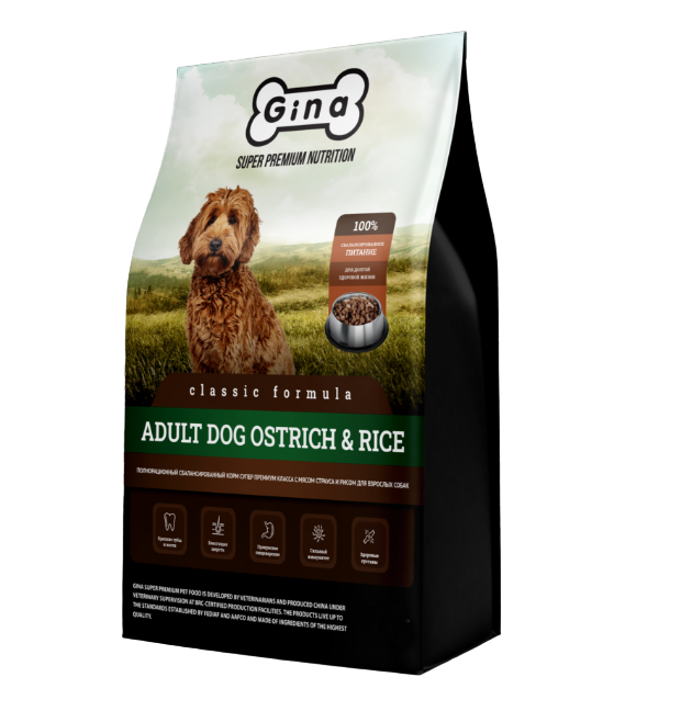 GINA CLASSIC ADULT DOG OSTRICH & RICE для взрослых собак с мясом страуса и рисом Китай 3 кг