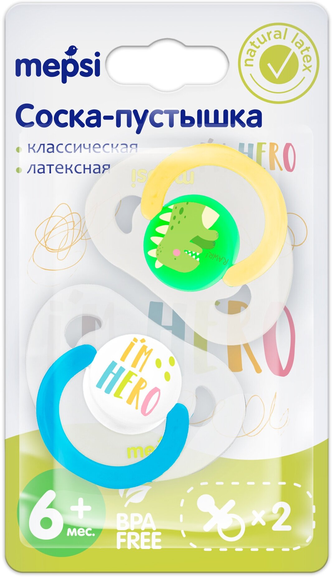 Соска-пустышка латексная Mepsi классическая, 6+ мес.,2 шт.