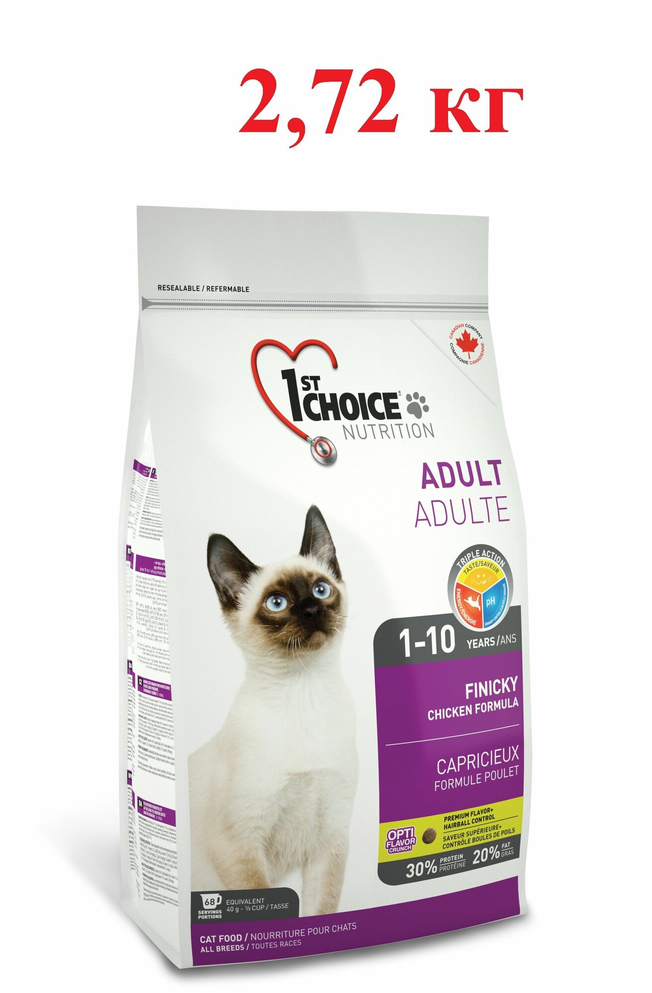 Корм 1st Choice для привередливых кошек с цыпленком, 2,72 кг.
