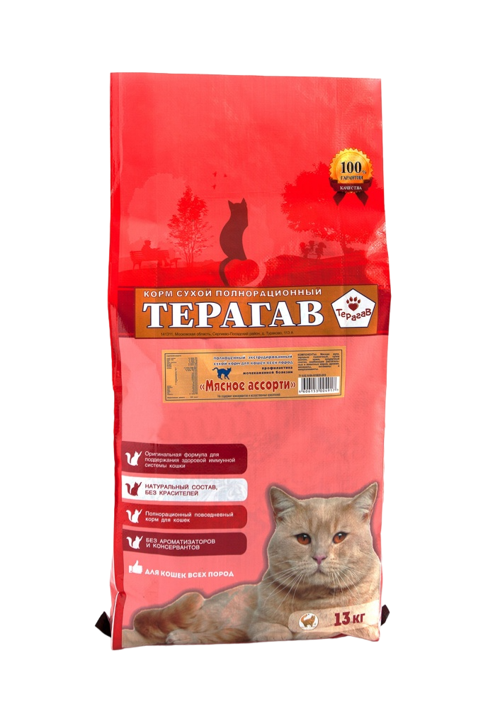 Сухой корм терагав мясное ассорти для взрослых кошек (13 кг)