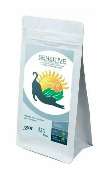 LiveRA Полнорационный низкозерновой сухой корм для взрослых кошек SENSITIVE, 0,35 кг - нежное мясо индейки для гурманов