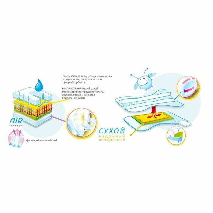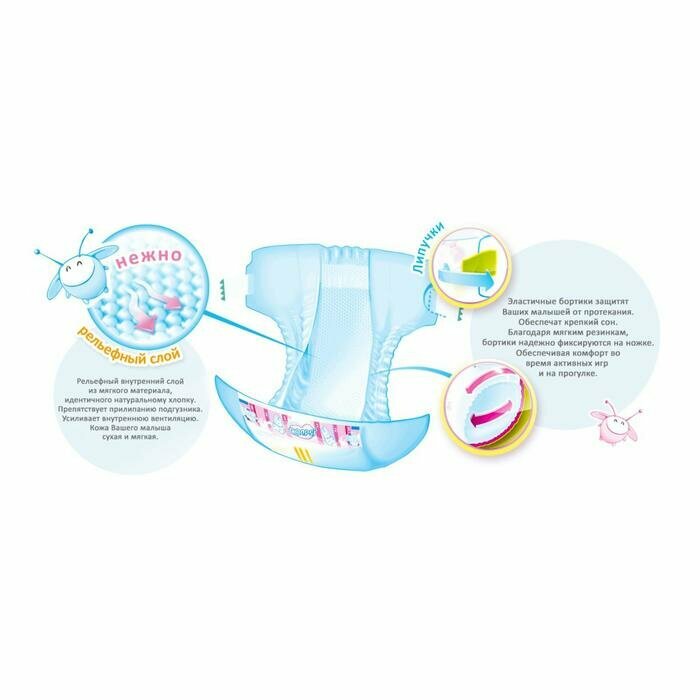 | Плюсы: | Быстро впитывают влагу, идеально сидят на ребенке, невысокая цена |