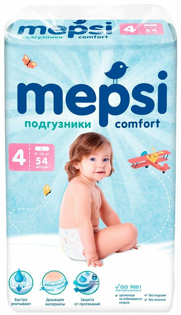 Подгузники для детей MEPSI L (9-16кг) 54 шт/уп