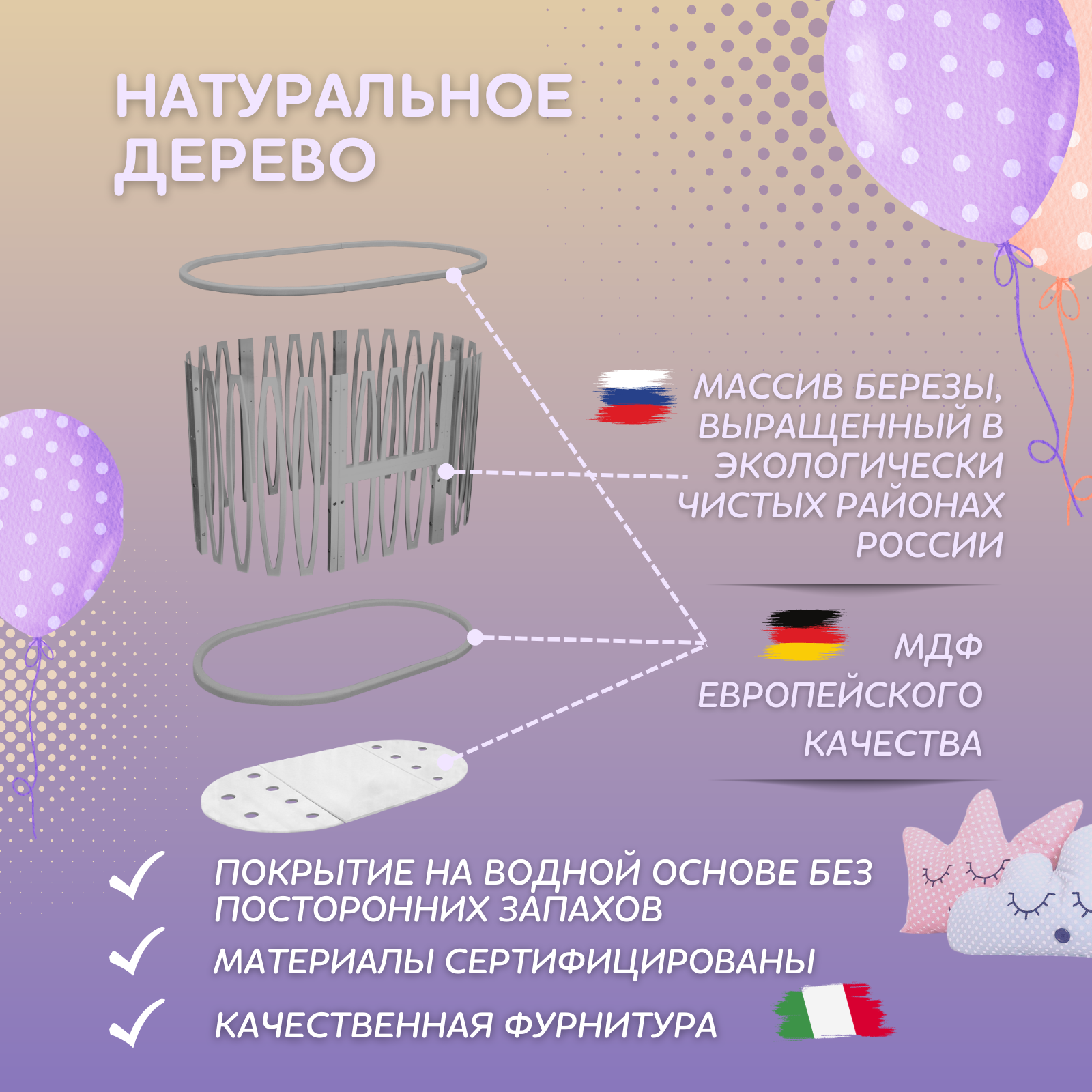 | Плюсы: | Отличная кроватка за свои деньги |