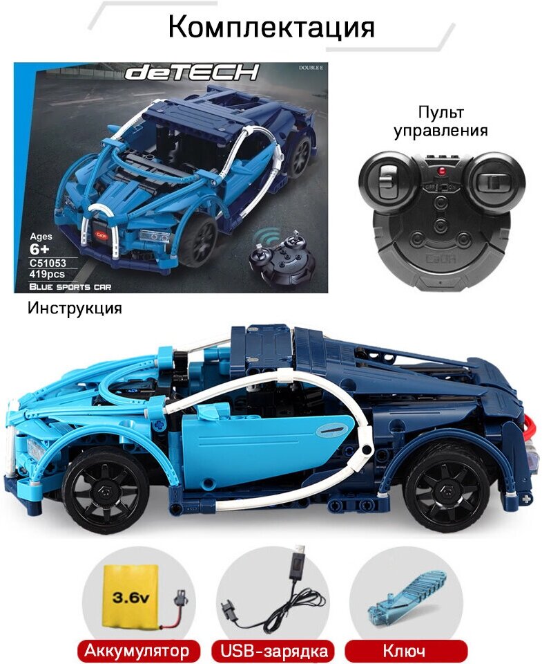 Конструктор Double Eagle CaDA deTECH C51053W Синий спортивный автомобиль, 419 дет.