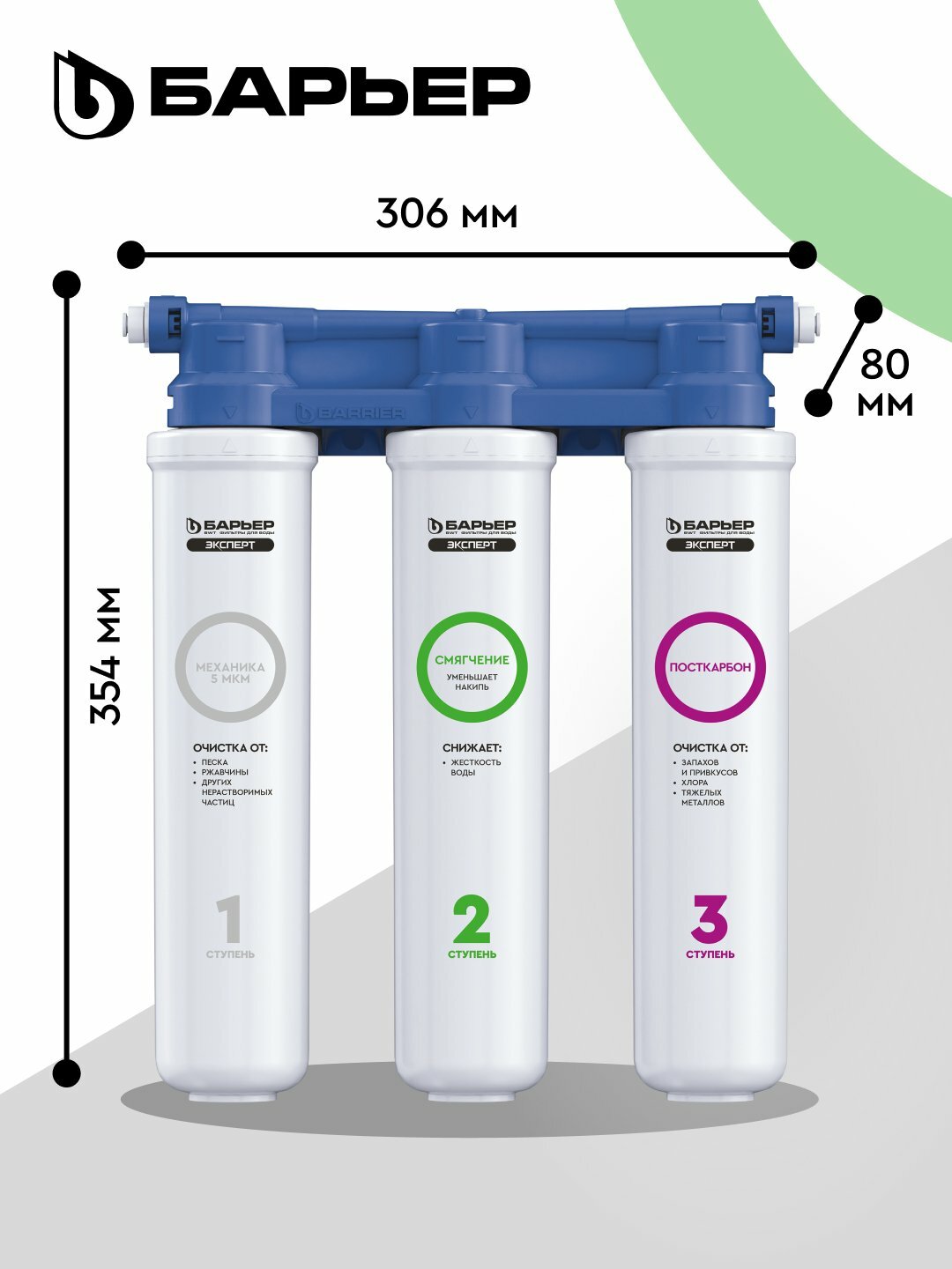 Фильтр под мойку для очистки воды трехступенчатый, быстросъемный БАРЬЕР эксперт слим Жесткость (без крана), защищает от накипи, смягчение воды