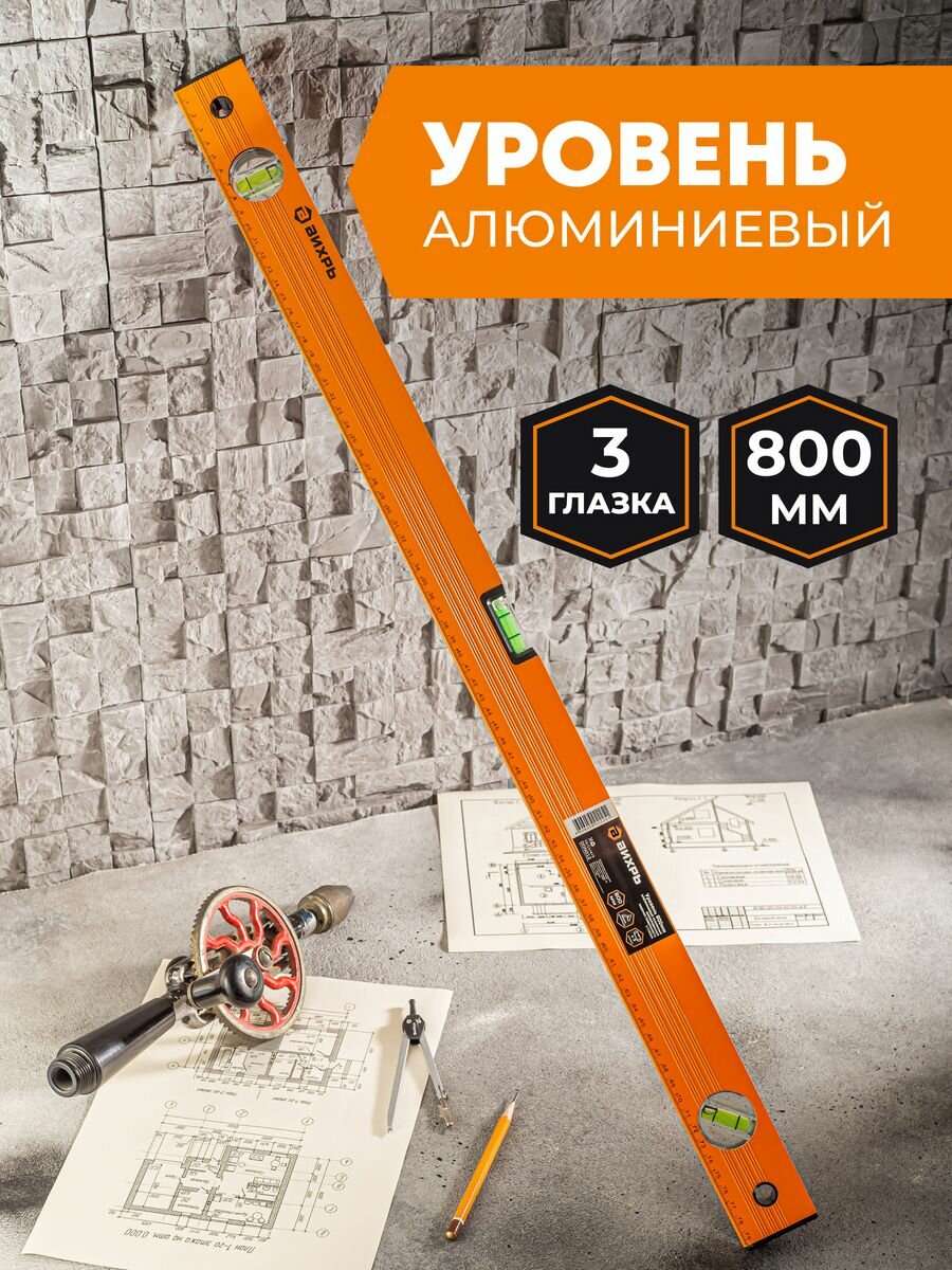 Уровень вихрь (длина: 800 мм, 3 глазка)
