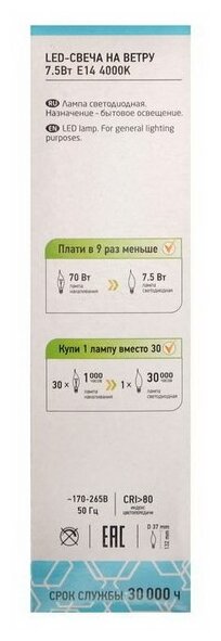 Лампа светодиодная led-свеча на ветру-standard 7.5Вт 230В Е14 4000К 675Лм ASD 4690612004563 интересное: