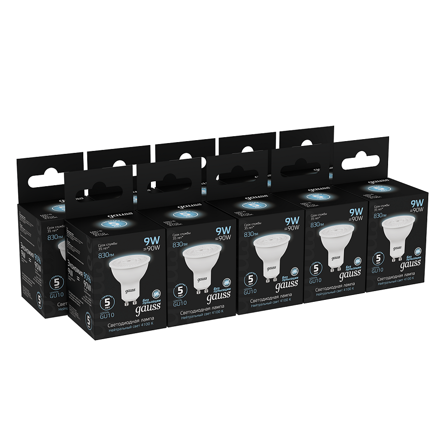 (5 шт) Лампа Gauss MR16 9W 830lm 4100K GU10 LED