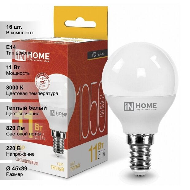Сохранить(16 шт.) Светодиодная лампочка IN HOME P45 11Вт 230В 3000К Е14 интересное: