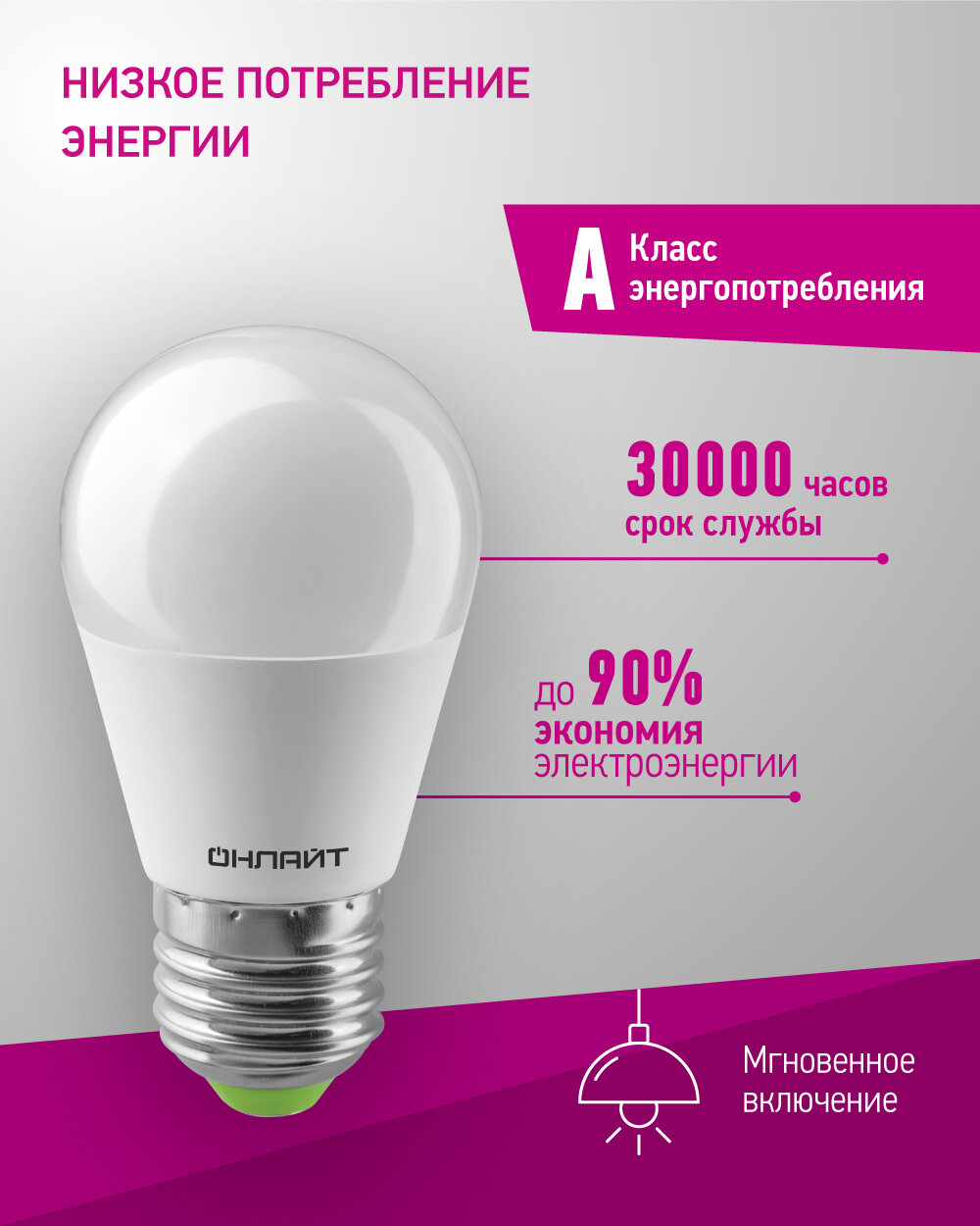 Онлайт промо шар G45 E27 10W (750lm) 4000K 4K 78x45 OLL-G45-10-230-4K-E27-PROMO, 82913