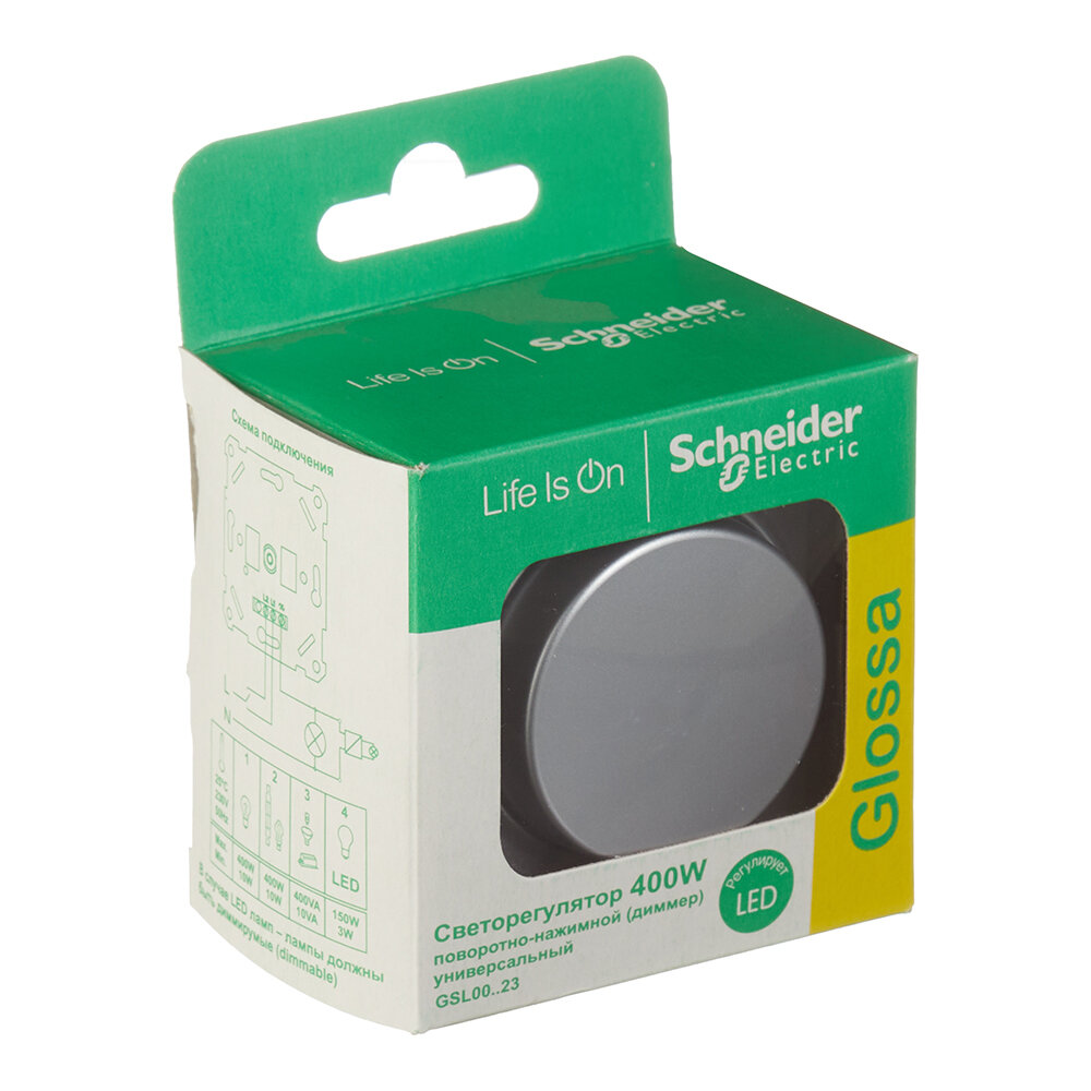 GLOSSA светорегулятор (диммер) повор-нажим, LED, RC, 400Вт, мех., алюминий , SCHNEIDER ELECTRIC GSL000323 (1 шт.)