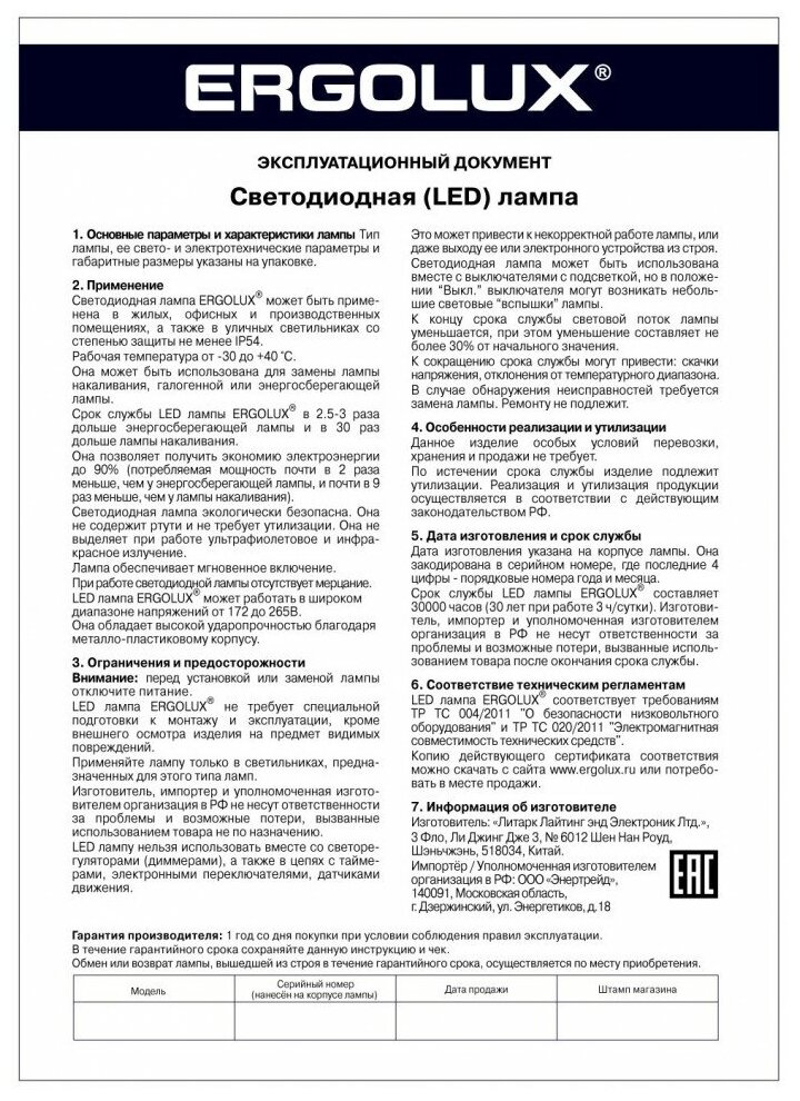 | Производитель | Ergolux |